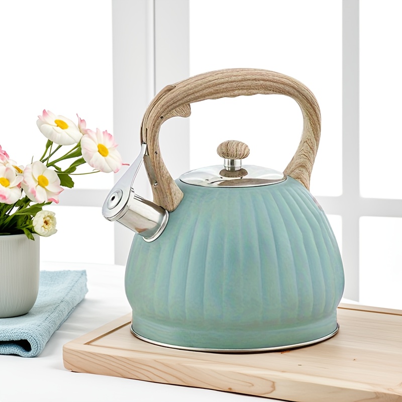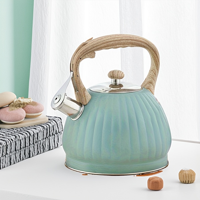 [Blue Pumpkin-Shaped Kettle] 3.5L Blue Pumpkin-Shaped Kettle with Ribbed Design, Stainless Steel, Compatible with Induction & Gas Stoves, Uniform Heating, Easy to Clean, Durable for Home, Bar, Milk Tea Shop Use