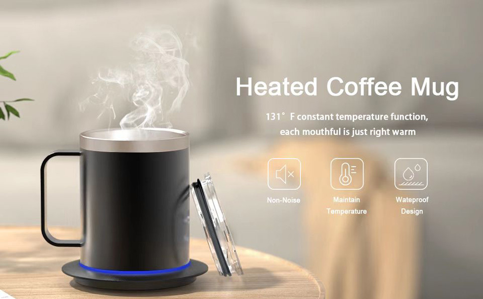Coffee Mug Warmer Electric Set For Desk, Mug With Heating Base And Lid, Intelligent Coffee Mug For Heating Milk, Tea And Hot Chocolate, Keeps Up To 131°F/55°C