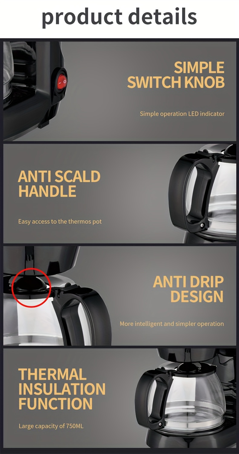 Drip Coffee Maker • 5-6 Cup Capacity • 750ml Coffee Maker