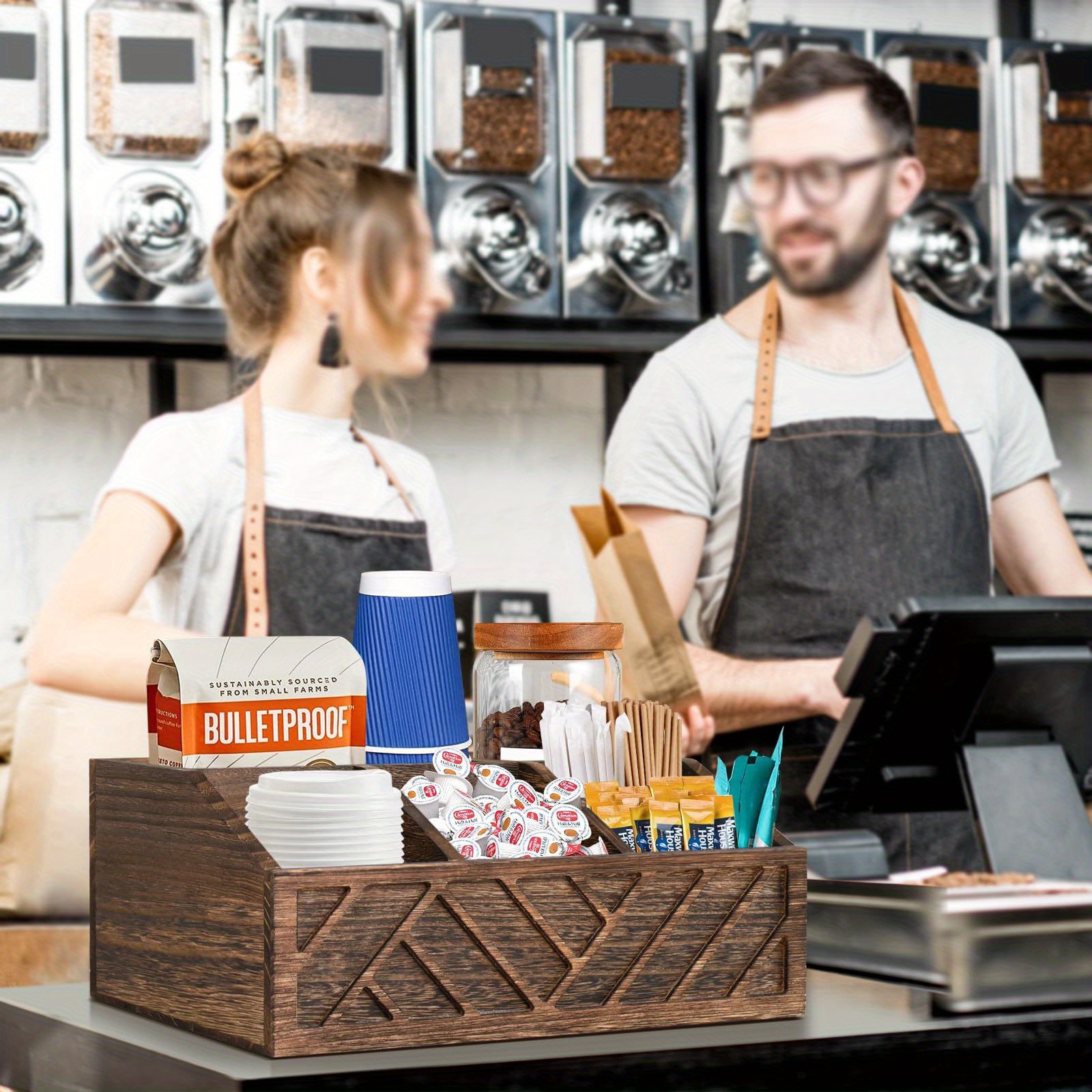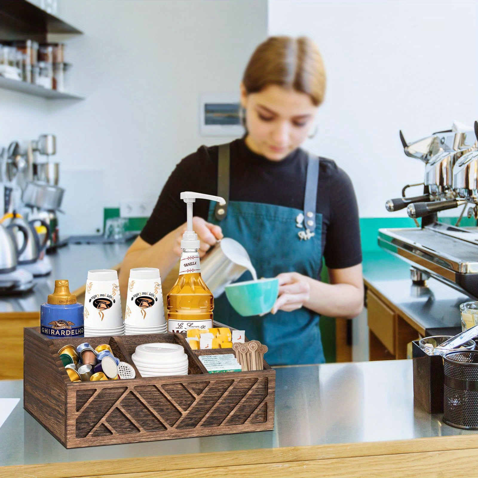 IDUK Coffee Station Organizer - Recycled Wood Coffee Bar Storage with Cup Holders, Compartmentalized Shelves - Space-Saving Countertop Organizer for Kitchen, Office, Cafe - Coffee &itchen Decor