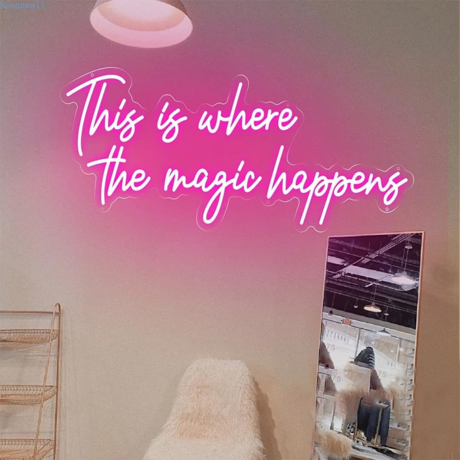This Is Where The Magic Happens" Neon Sign, Large Pink Letter LED Neon Sign - Suitable for Home Decoration, Game Room, Salon, Bar, Club, Store, Party, Wedding, Celebration Occasions Wall Hanging Decorative Light, Perfect Gift - 5V USB Switch