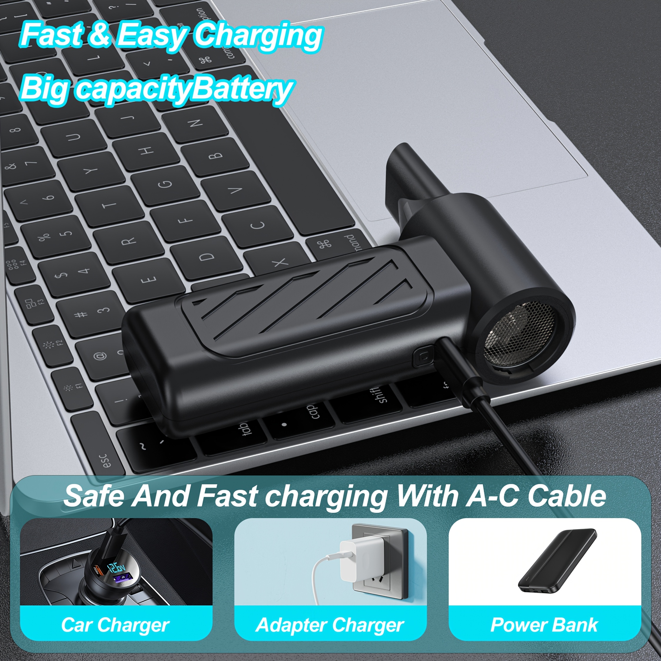 New Upgrade - Portable Turbine Hair Dryer - 3-speed Mini Fan | Rechargeable Portable Fan | Handheld Cooling Blower Fan, Suitable for Travel, Snowy Areas, Camping, Personal Cooling, Keyboard, Car, Ultimate Gift for Men