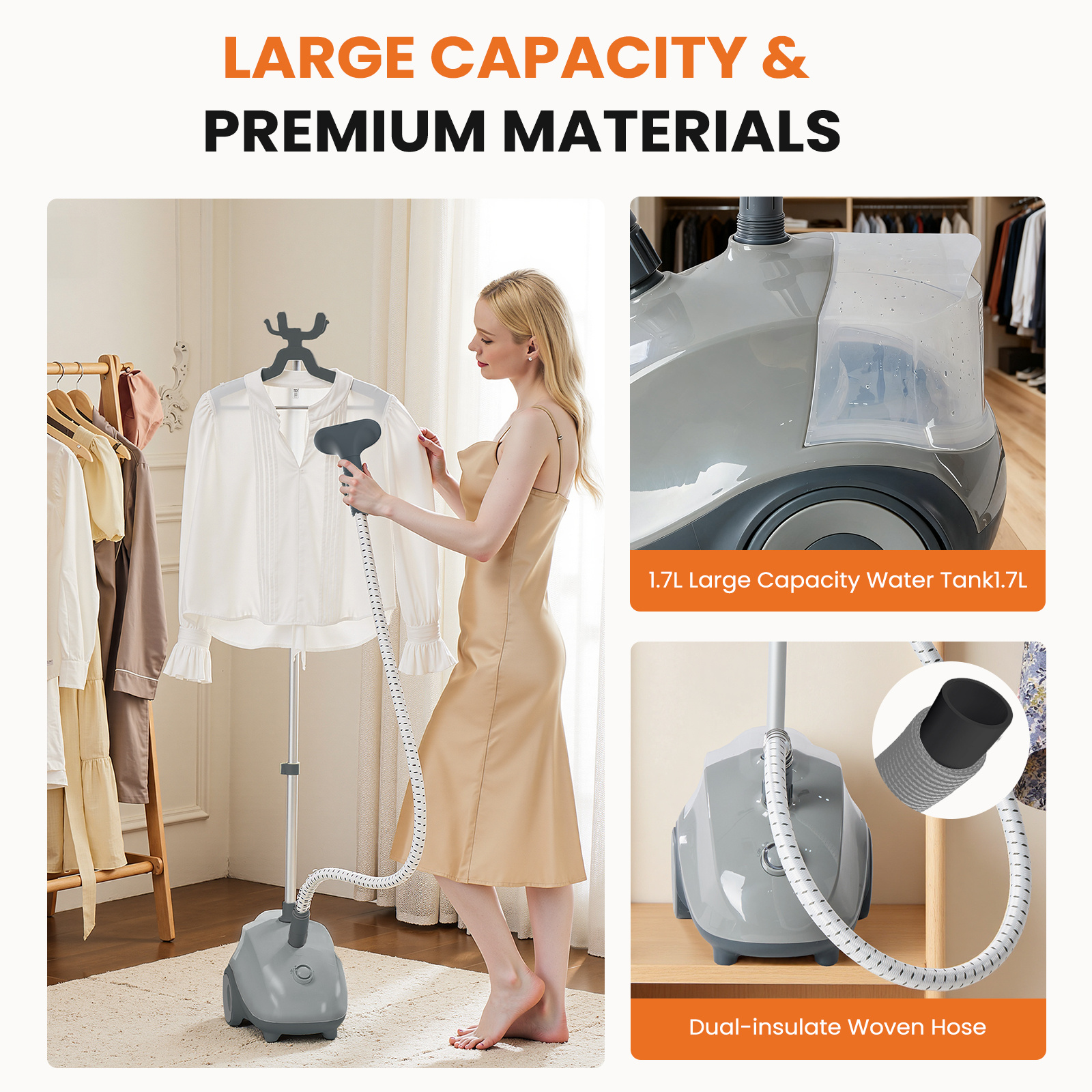 1500W Powerful Garment Steamer for Clothes Standing, Clothes Steamer Standing with Wheels, 1.7L Water Tank for 55 Min Continuous Steaming, Professional Wrinkle Remover Heats in 45 Seconds
