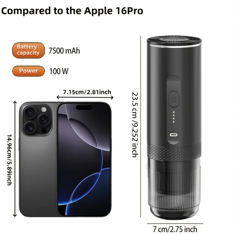 1pc Wireless Portable Italian Coffee Maker with Heating Function, 7500mAh Large Capacity Battery, No Hot Water Needed, Car Carry Coffee Machine