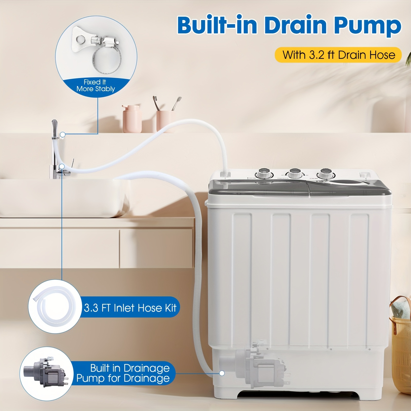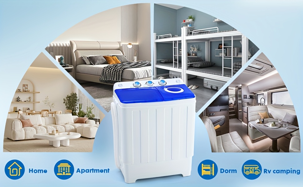 28lbs Capacity Portable Washing Machine Twin Tub - Compact Washer And Spinner Dryer Combo With Drain Pump - Semi Automatic Washing Machine For Apartments, Dorms, RVs, Camping