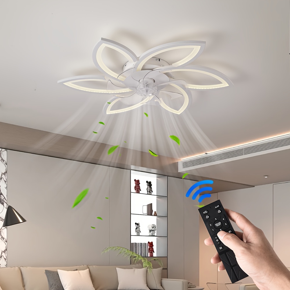 [6-Speed LED Ceiling Fan] 3-Color Dimmable Modern Flower-Shaped LED Ceiling Fan with Light and Remote Control | 6-Speed Adjustable, Detachable Acrylic Shade, One-Click Switch for Reverse Rotation | Ideal for Living Room, Bedroom, Kitchen, Garage, and Commercial Spaces