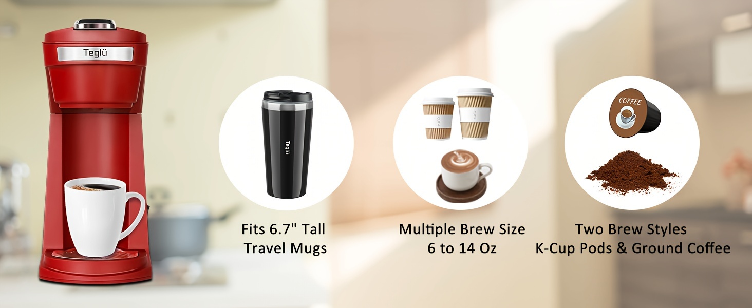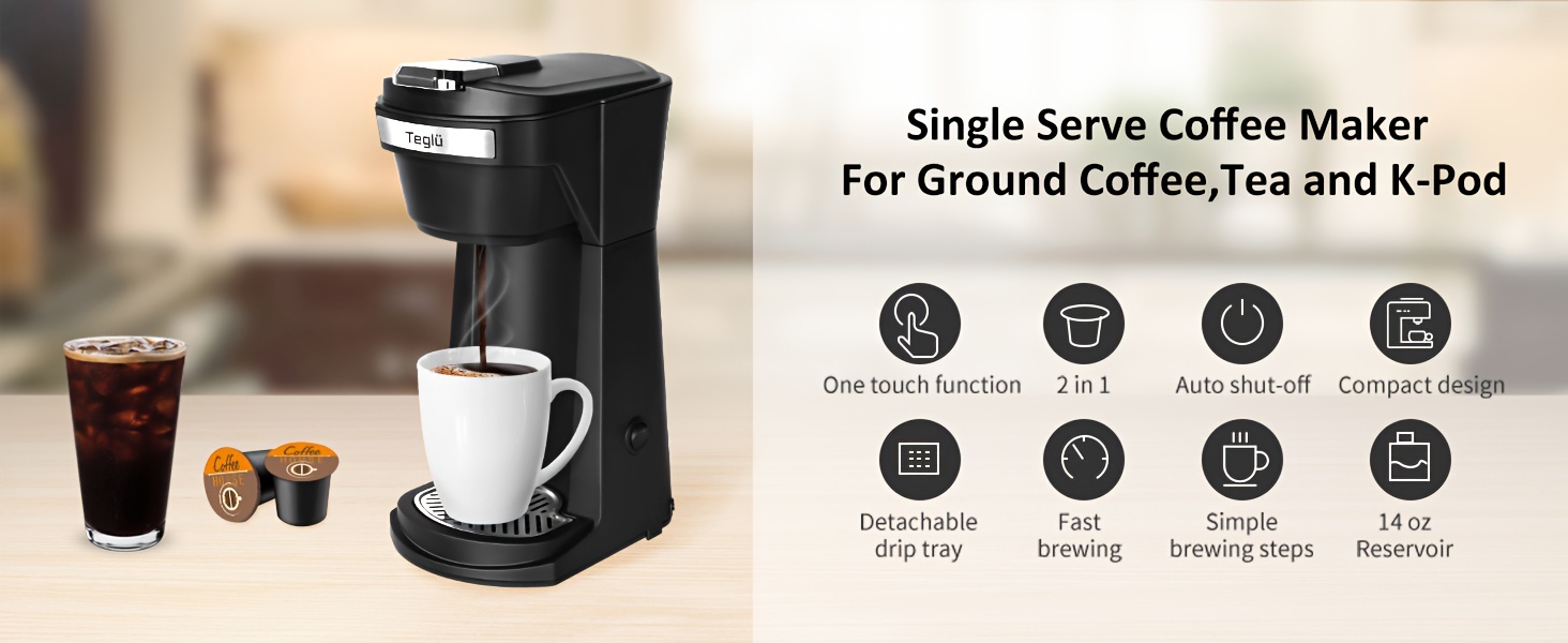 Single Coffee Maker 2in 1 for K Cup Pods & Ground Coffee 3 Color 6-14oz Drip Coffee Machine, Modern Coffee Brewer, Compact Design, Highquality Materials, Multicup Brewer, Office Workers, Coffee Lovers