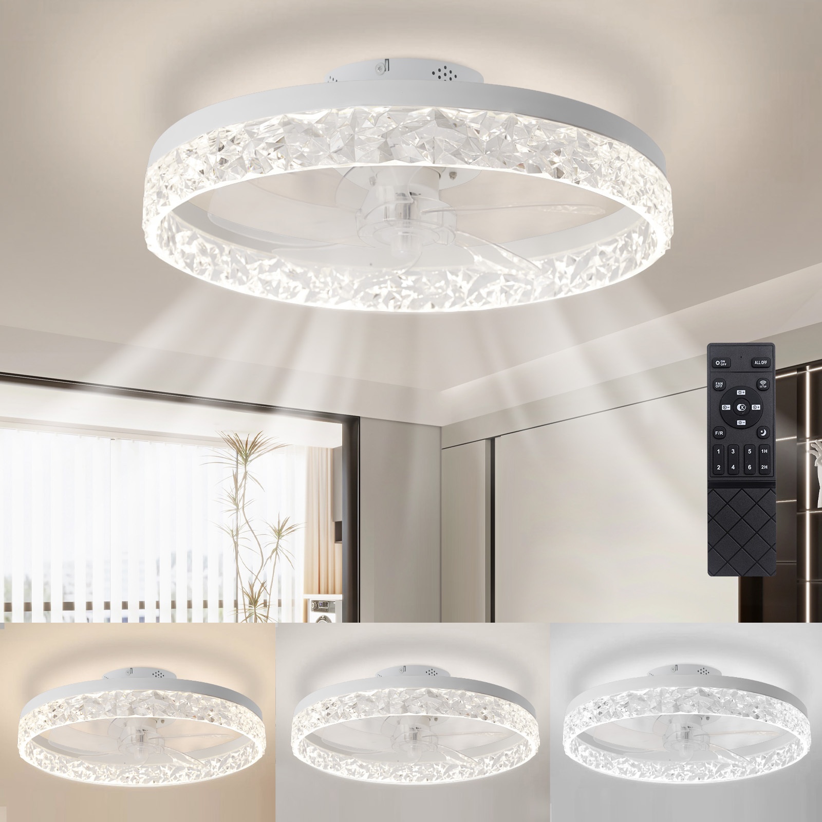 Thin Ceiling Fan with Light, 15.7-Inch Ceiling Fan with Light, Dimmable Embedded LED Fan, 3 Colors, 6-Speeds, Suitable for Bedroom, Living Room, Dining Room, Kitchen